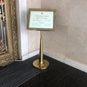 Chỉ dẫn cho khách hàng về nội dung cần thông báo và trình bày. Nó còn gớp phần tô điểm cho không gian trở nên sang trọng và lịch sự. Được làm bằng inox sang bong nên có thể dễ dàng làm sạch khi cần.