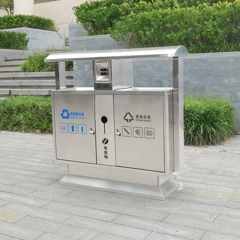 Thùng rác ngoài trời được làm bằng inox 304 chống gỉ sét. Sản phẩm sáng bóng, bền đẹp, với thiết kế thùng kín không làm rác bị bay mùi ra môi trường xung quanh, đảm bảo vệ sinh và thân thiện với môi trường. Biểu tượng được in trên thùng rác rất đẹp mang thương hiệu cũng như hướng dẫn mọi người nên bỏ rác vào thùng.
