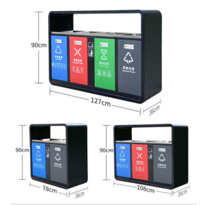 - Kích thước tối ưu: Thùng rác có kích thước lớn: (L)1320 x (W)360 x (H)900 mm, phù hợp với những nơi có lượng rác thải lớn, đảm bảo không gian sạch sẽ, gọn gàng.