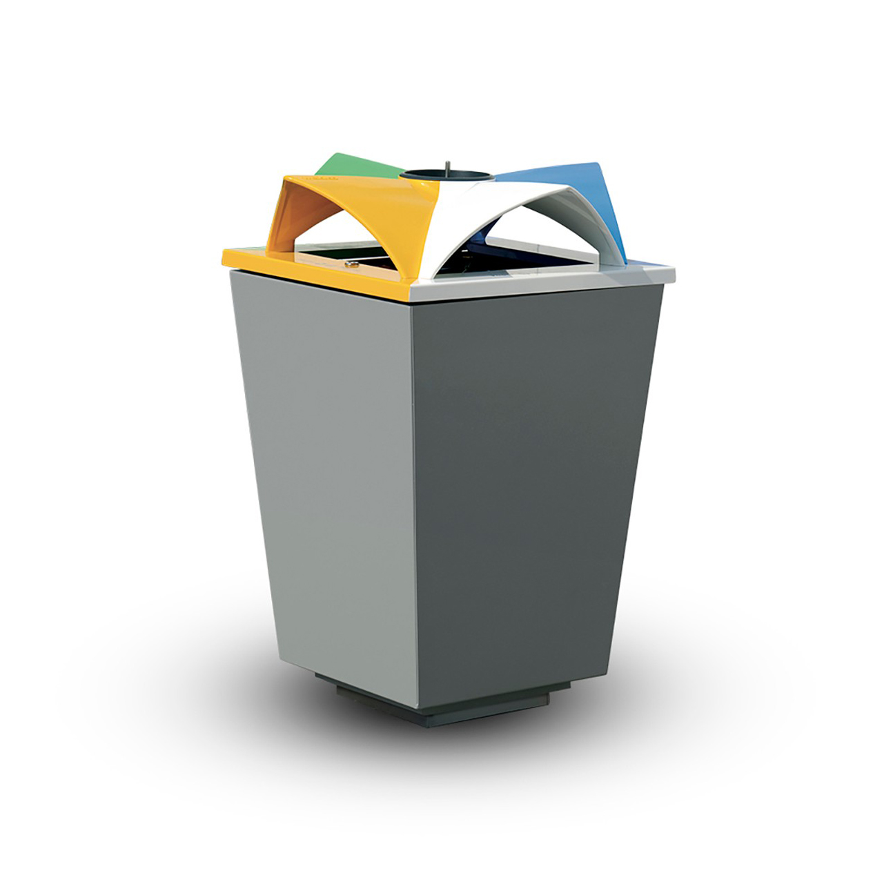 Thùng rác Vietbin Ecomix nổi bật với thiết kế hình côn cụt độc đáo, với phần đáy nhỏ và miệng rộng dần lên. Thiết kế này không chỉ tạo điểm nhấn hiện đại mà còn tối ưu hóa không gian sử dụng. Đặc biệt, phần nắp được chia làm 4 ngăn với màu sắc nổi bật, giúp người dùng dễ dàng phân loại rác thải ngay lập tức. Đây là một cách hiệu quả để khuyến khích cộng đồng chung tay bảo vệ môi trường.