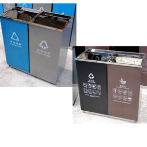 Thùng rác inox 2 ngăn là sản phẩm thông dụng trong các khu sân bay, trung tâm thương mại. Dùng để phân loại rác thải thành từng nhóm, tiện cho việc sử lý rác sau này.