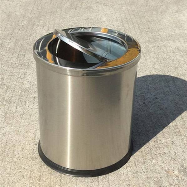 Thùng rác inox tròn nắp lật hay còn gọi nắp bập bênh dùng trong sảnh tòa nhà, cầu thang, sảnh hàng lang …