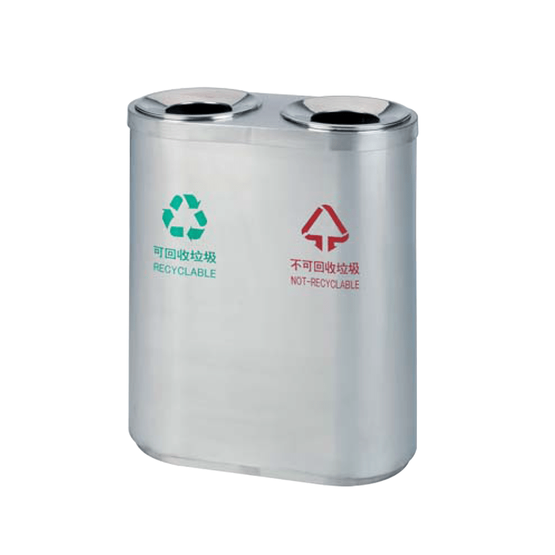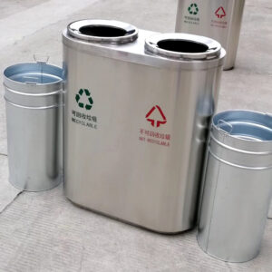 Thùng rác inox 2 ngăn là sản phẩm thông dụng trong các khu sân bay, trung tâm thương mại. Dùng để phân loại rác thải thành từng nhóm, tiện cho việc sử lý rác sau này.