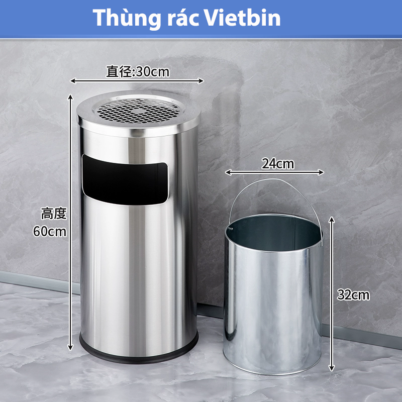 Thùng rác inox tròn giá rẻ có gạt tàn thuốc A35-B