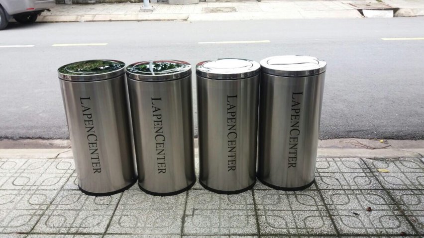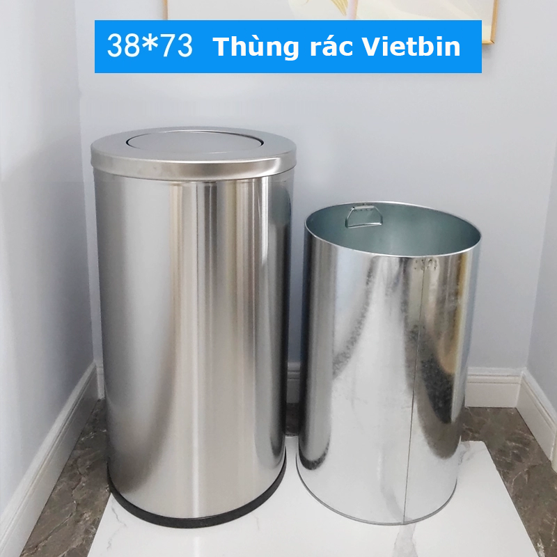 Thùng rác inox tròn nắp bập bênh A35-G giá rẻ (Nắp lật )