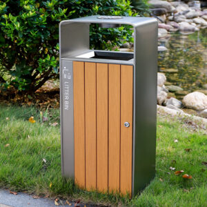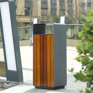 - Tùy chọn nan gỗ nhựa hoặc thép: Khách hàng có thể lựa chọn nan thùng rác bằng gỗ nhựa cao cấp, mang lại vẻ ngoài gần gũi và sang trọng, hoặc chọn nan thép phun sơn tĩnh điện để tăng cường tính đồng nhất và độ bền cơ học. Cả hai tùy chọn đều chống gỉ sét, chống thấm nước và bền màu theo thời gian.