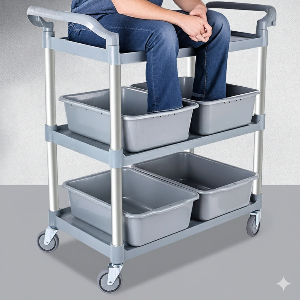 Trong các không gian phục vụ bận rộn như nhà hàng, khách sạn hay quán ăn, việc di chuyển và sắp xếp đồ dùng, thức ăn cần sự linh hoạt và tiện lợi tối đa. Xe đẩy đa năng 3 tầng TA04 là giải pháp hoàn hảo, kết hợp giữa thiết kế thông minh và tính năng vượt trội, giúp công việc của bạn trở nên nhanh chóng và chuyên nghiệp hơn bao giờ hết.
